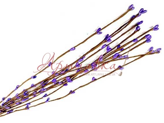 Штучна гілочка весняної верби із кольоровими бруньками. У пучку 10 таких гілочок. На гнучкому дроті, що досить зручно для флористів при створенні різного декору, вінків, сувенірів. Довжина гілки 40 см.
