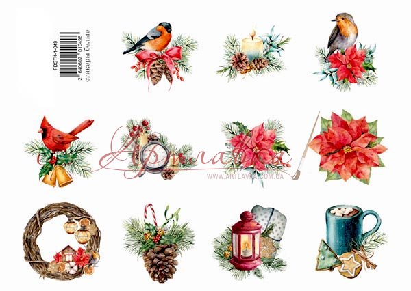 Наклейки з зимовою тематикою для журналингу та створення листівок, адвент-календарів та іншого новорічного декору. Аркуш 21см x 14,5 см.