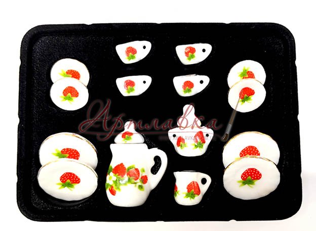 Набір мініатюри чайний порцеляновий "Полуничка", 15 пр.