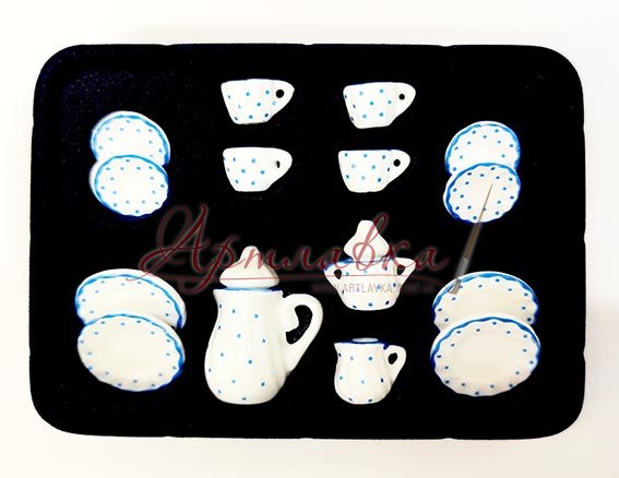Набір мініатюри чайний порцеляновий "Блакитний горошок", 15 пр.