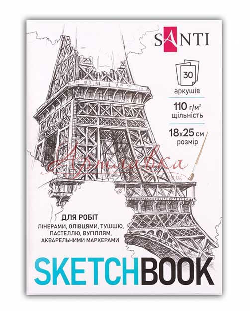 Скетчбук для графіки Sketchbook Santi, 18х25см, 30 арк.
