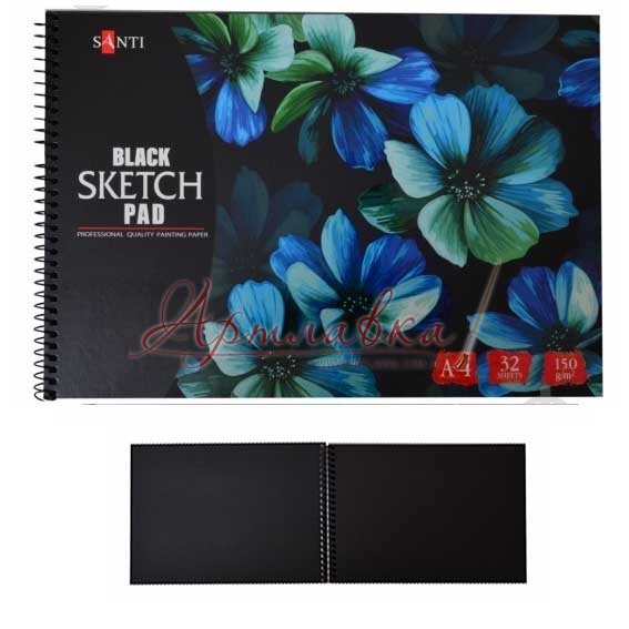 Альбом чорного паперу для ескізів Santi А4 32 арк.