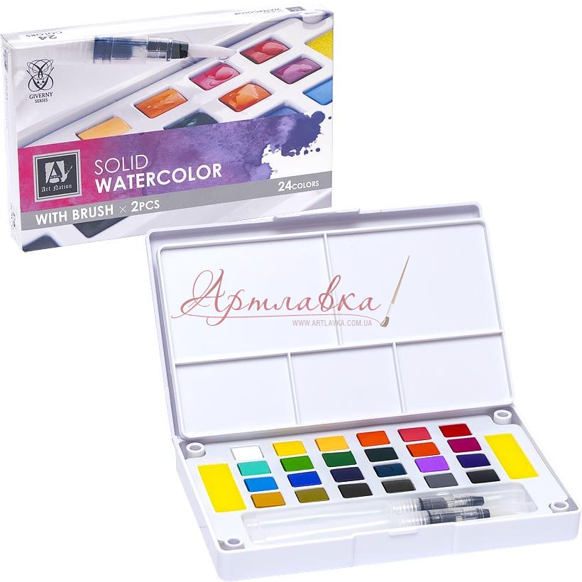 Набір акварельних фарб Art Nation в пластику, 24 кол., 2 пензлі + палітра