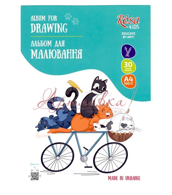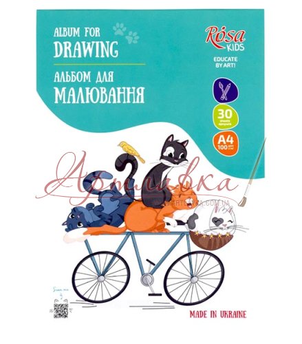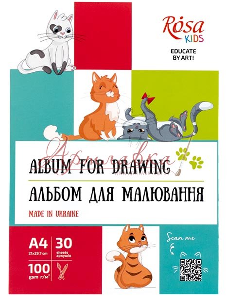 Альбом-склейка для малювання, Cats, А4, 100г/м2, 30л, ROSA Kids