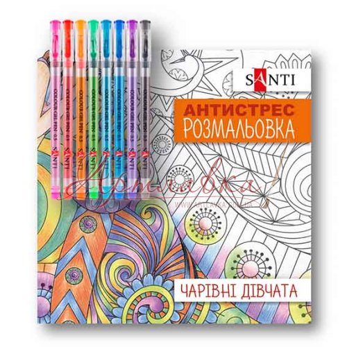 Розмальовка антистрес, з гелевими ручками "Чарівні дівчата"