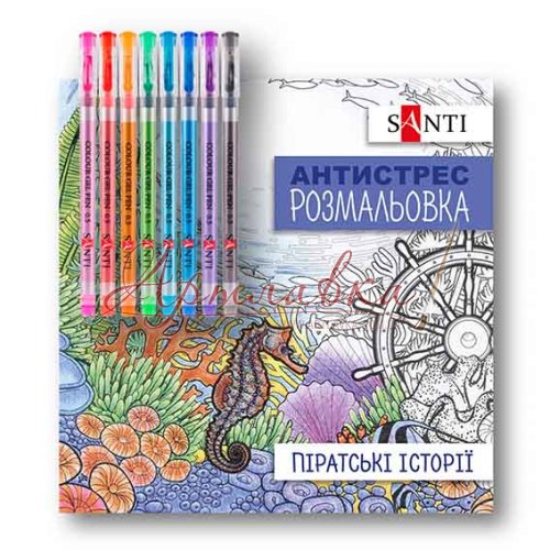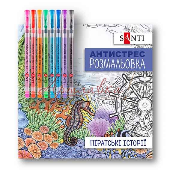Розмальовка антистрес з гелевими ручками "Піратські історії"