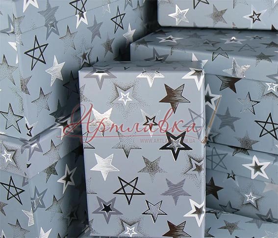 Коробки подарункові із золотими зірками, розміри в асортиментах, вибирайте в спадаючому списку потрібний розмір). Коробки з дуже щільного картону підійдуть як для впакування подарунка, так і для зберігання. Якісне впакування - застава не тільки гарного зовнішнього вигляду, але й чудесного враження про подарунок.