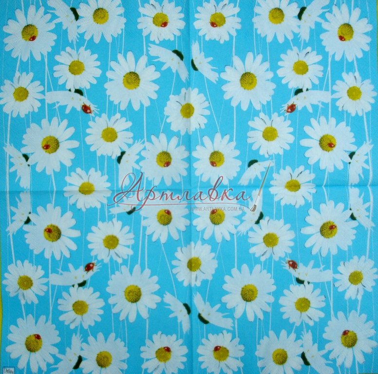 Головна › Декупажна серветка "Ромашки на бірюзі", 33*33 см