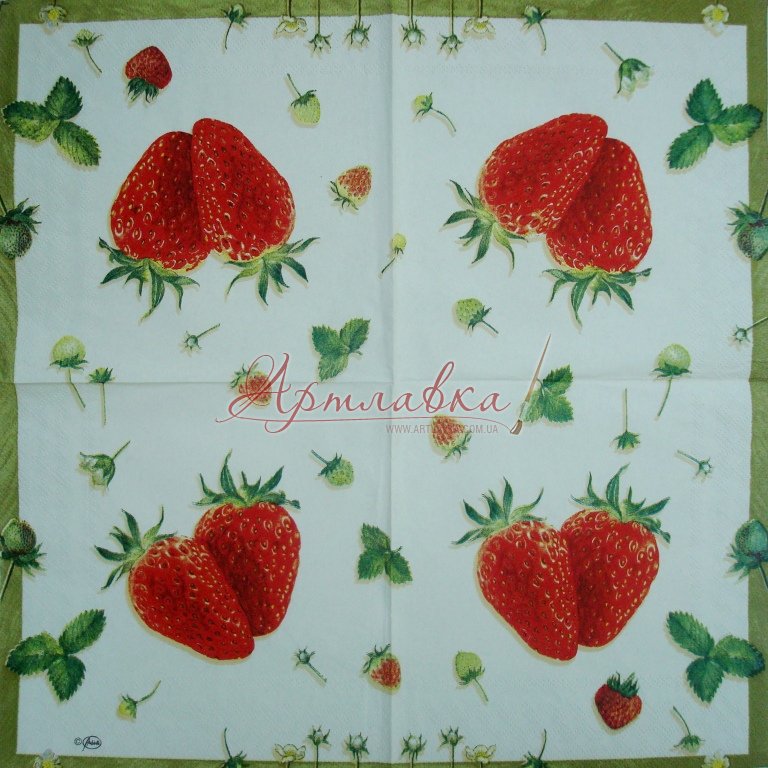 Головна › Декупажна серветка "Полуничні парочки", 33*33 см