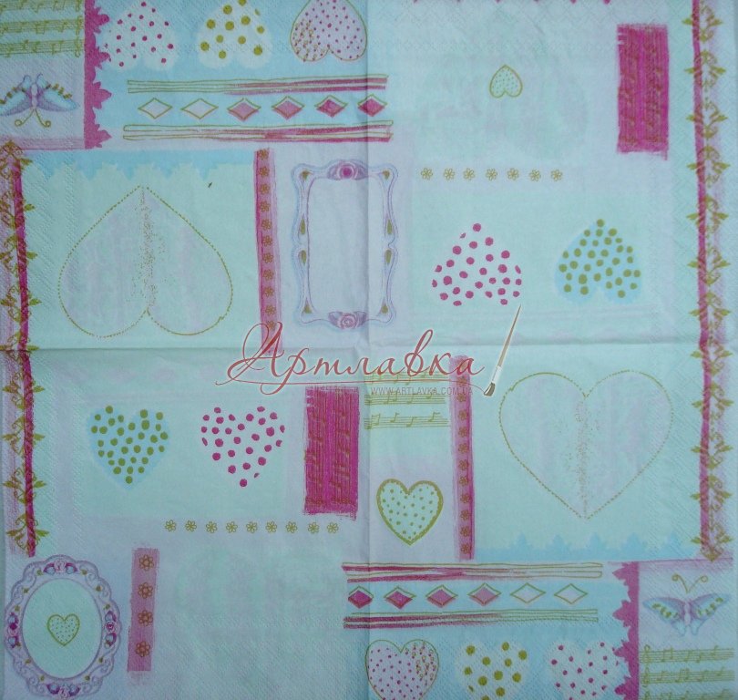 Декупажна серветка "Серденька, полосочки", 33*33 см