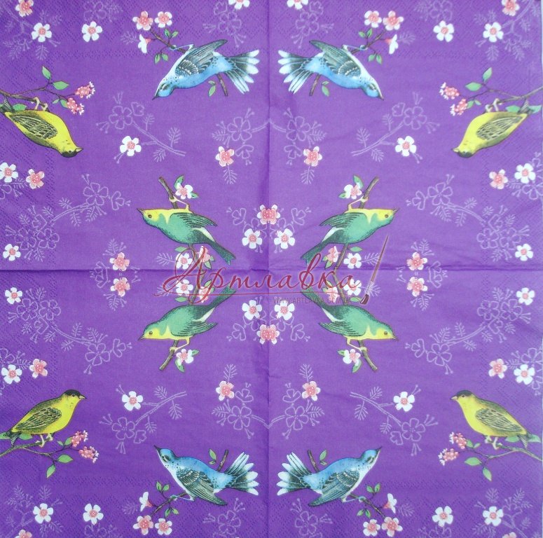 Головна › Декупажна серветка "Птаха на фіолетовому тлі", 33*33см