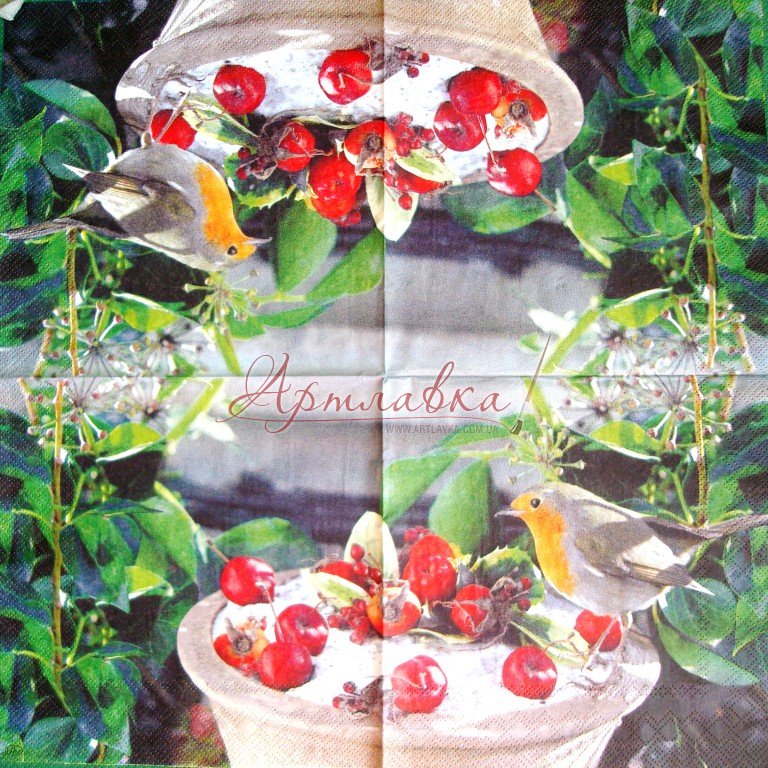 Головна › Декупажна серветка "Пташка й шипшина", 33*33см