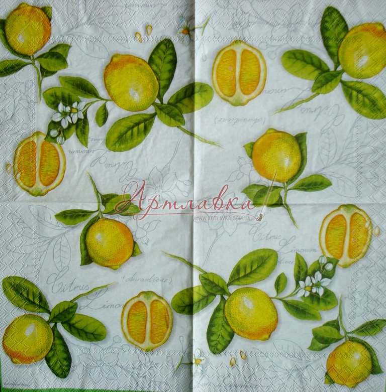 Головна › Декупажна серветка "Лимони на гілочках", 25*25см