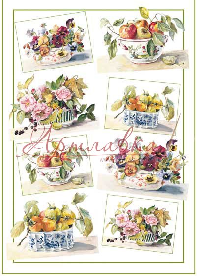 Декупажна карта "Вази із фруктами й квітами", 60г/м, 50*70см