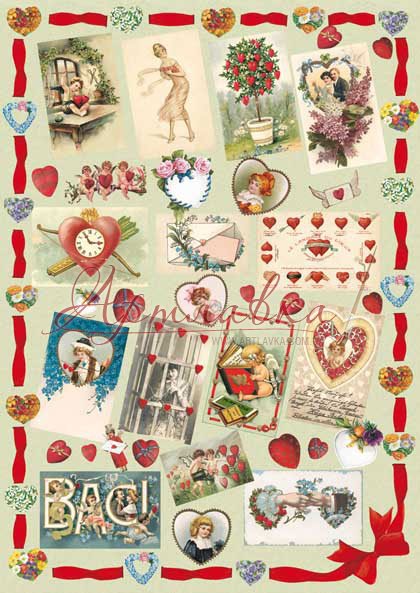 Декупажна карта "Валентинки", 60г/м, 50*70см