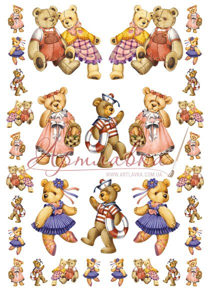 Серветка декупажна з рисового паперу "Маленькі ведмедики",35*50см