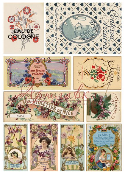 Серветка декупажна з рисового паперу "Парфумерні етикетки",35*50см