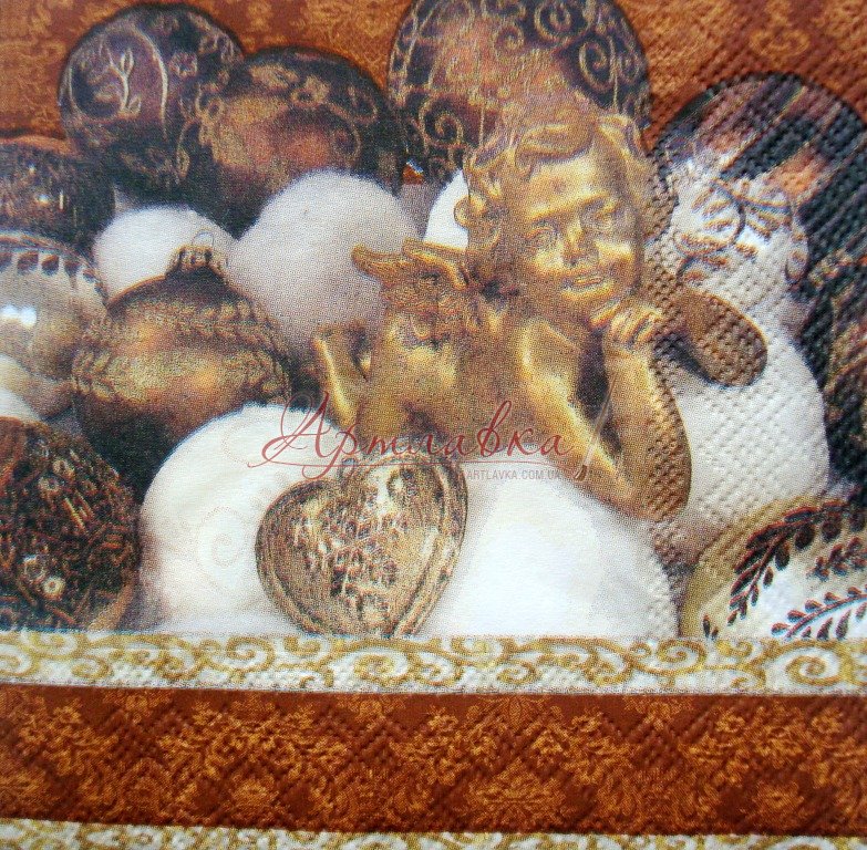 Декупажна серветка "Янголятко в ялинкових іграшках", 25*25 см