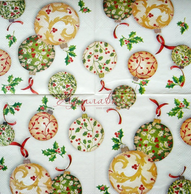 Декупажна серветка "Ялинкові іграшки", 25*25 см