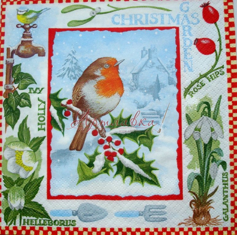 Декупажна серветка "Рождественський сад", 33*33 см