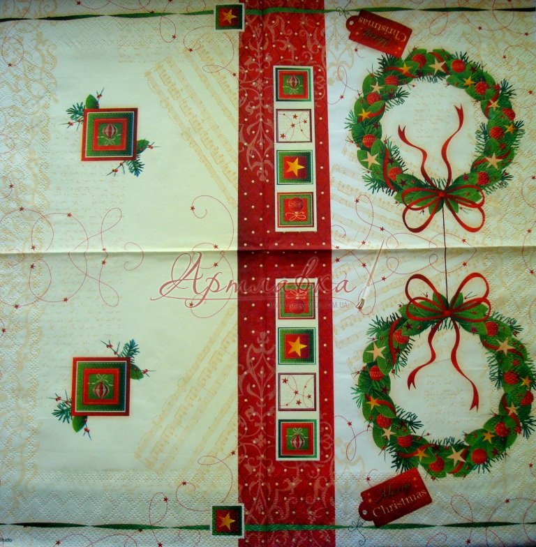 За допомогою декупажної серветки на новорічну тематику легко можна створити будь-який виріб у техніку декупаж. Новорічні декупажние серветки підходять для створення різдвяних сувенірів, листівок, оригінальних виробів і подарунків у технке декупаж. Гарні мотиви, прийнятним ціна й легкість у використанні столової серветки дозволяють створювати угікальние речі своїми руками.