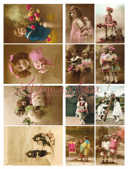 Декупажна карта "Фотолистівки "Діти із квітами"", 35*50см