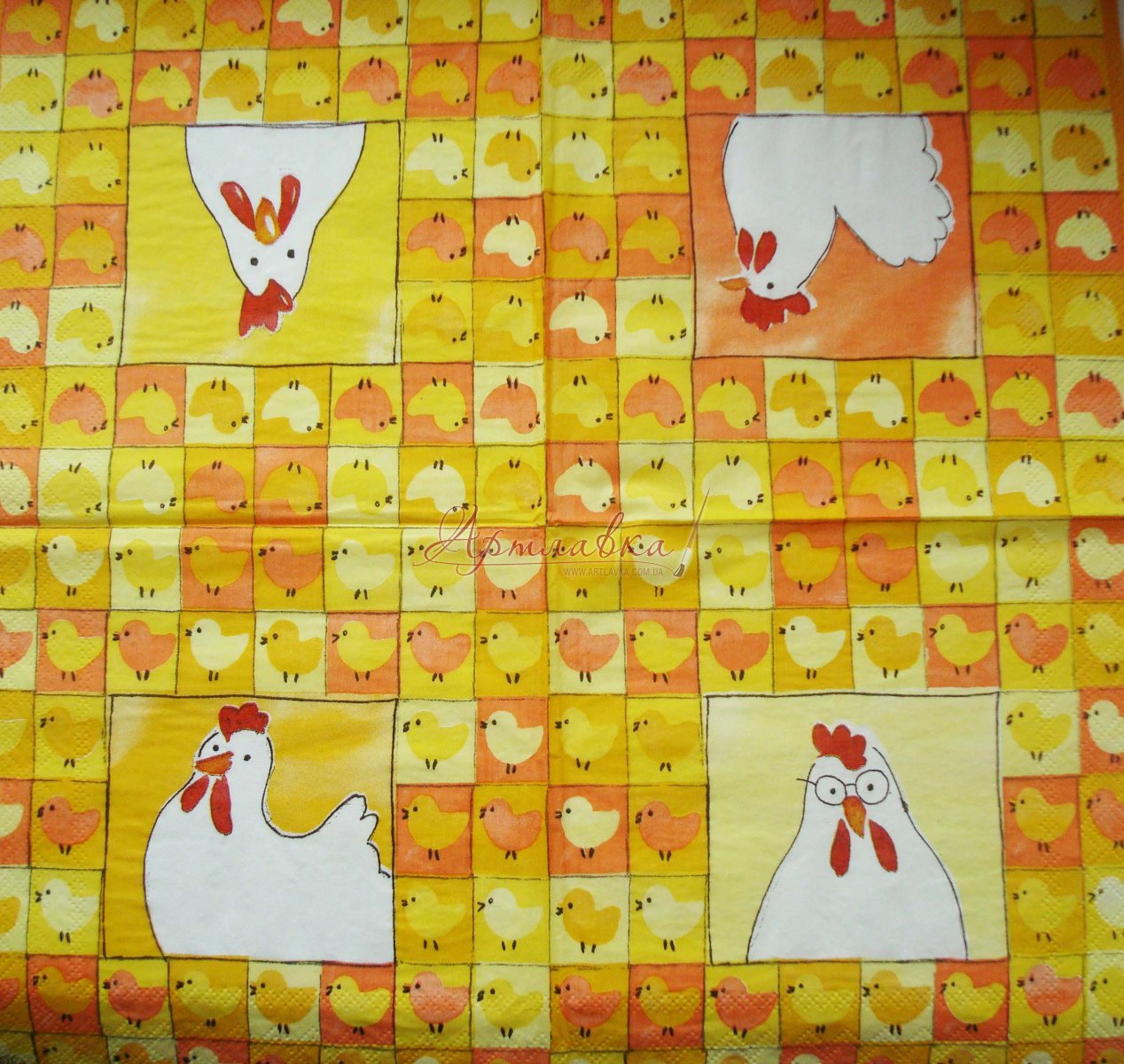 Головна › Декупажна серветка "Курочки на жовтому тлі",33*33см