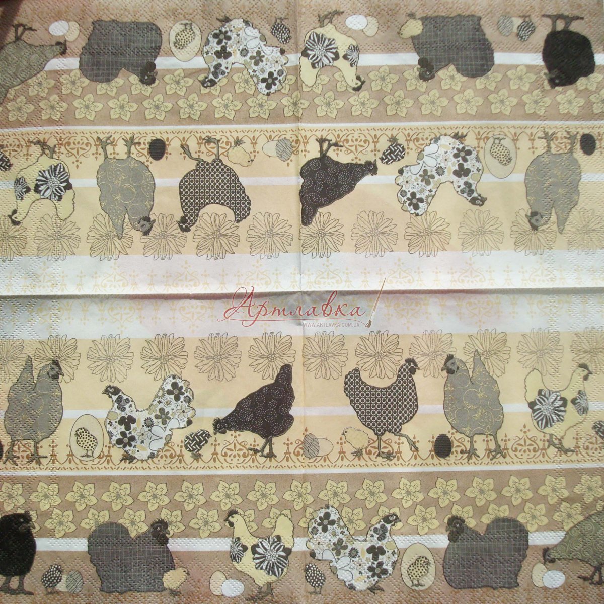 Декупажна серветка "Курочки, квіти, курчата", 33*33 см