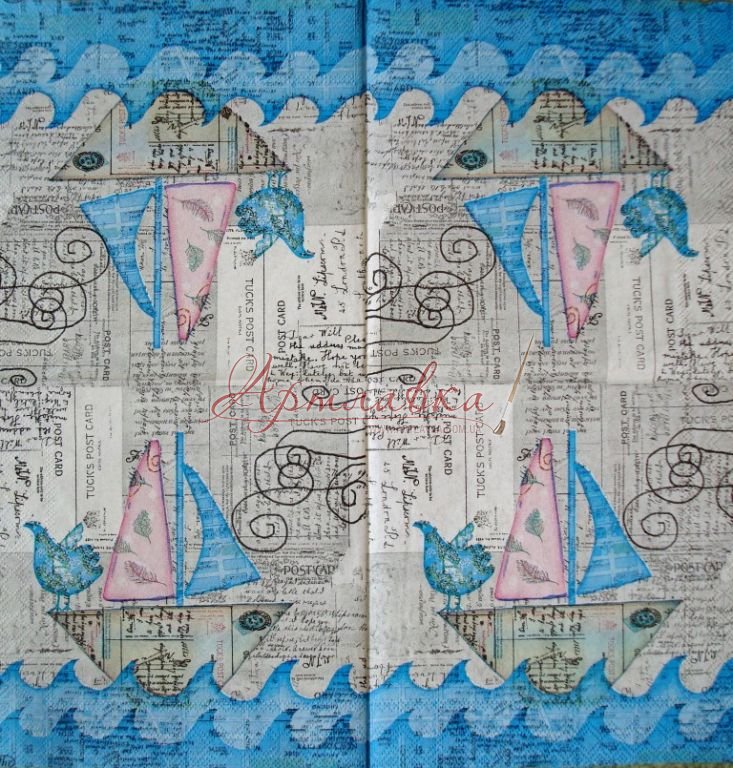 Головна › Декупажна серветка "Морські листи", 33*33см