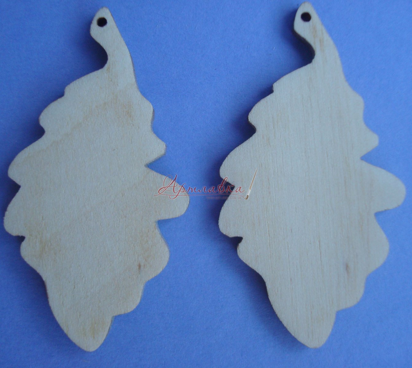 Заготовка для сережок дерев'яна "Дубові листики", 54*29*3мм