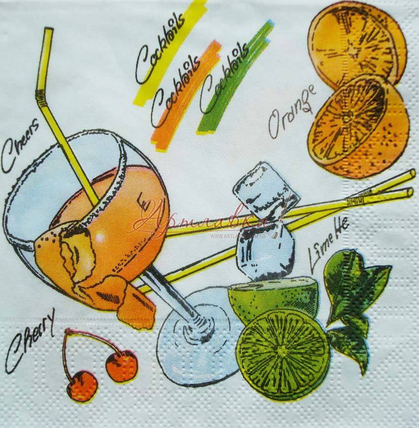 Декупажна серветка "Коктейль, вишні-цитрусові", 25*25 см