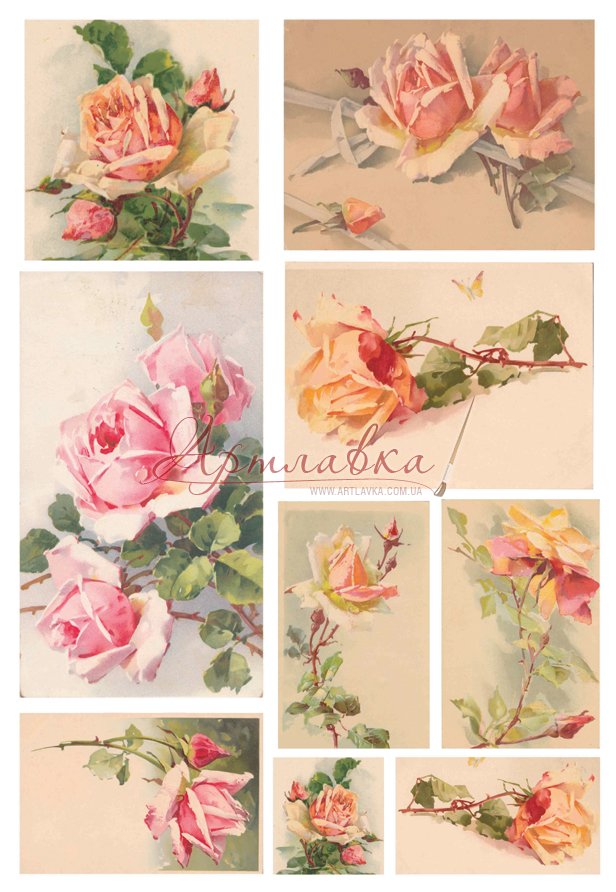 Декупажна карта "Просто троянди-1", 35*50см