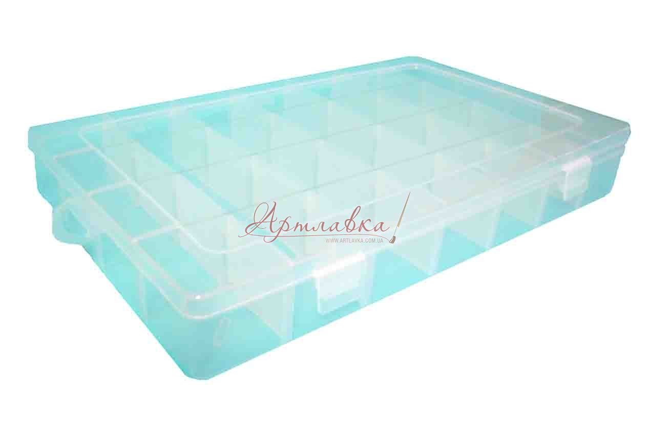 Пластиковий бокс із гніздами дозволяє зберігати дрібні деталі: ґудзика, бісер, бусини, різну фурнітуру для біжутерії й т.д.