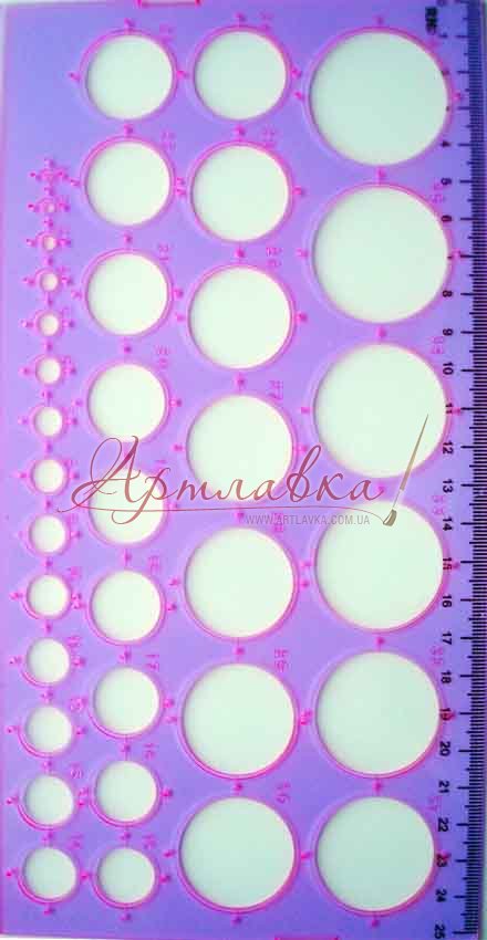 Напівпрозора пластикова лінійка з окружностями різних діаметрів, розміткою й сантиметровою лінійкою - для створення різних елементів квілінгу, креслення, і ін. паперових робіт.