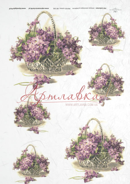 Рисовий папір для декупажу "Фіалки в кошиках", 20х30см