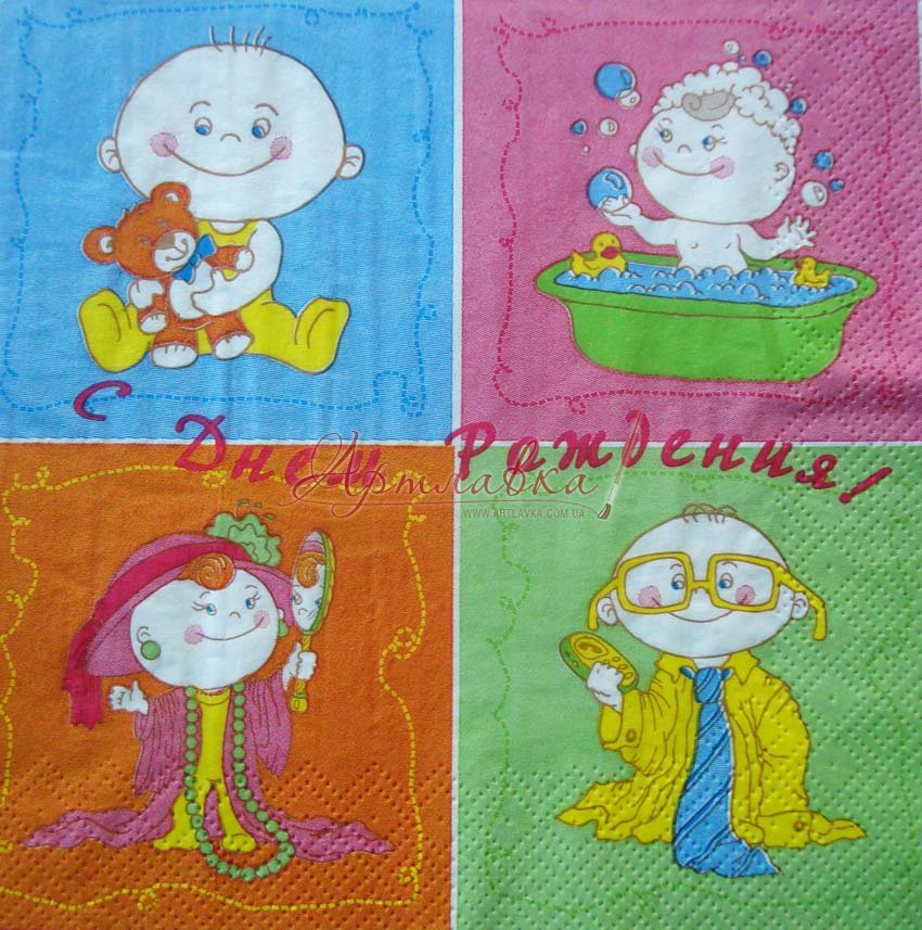 Декупажна серветка " Із Днем Народження, Маля", 33*33 см