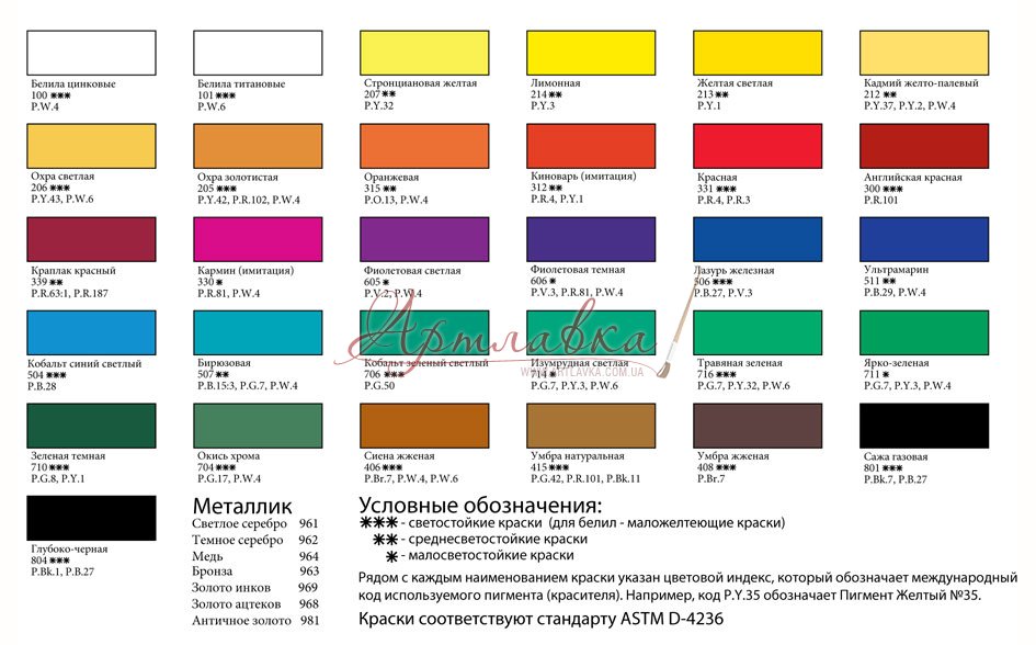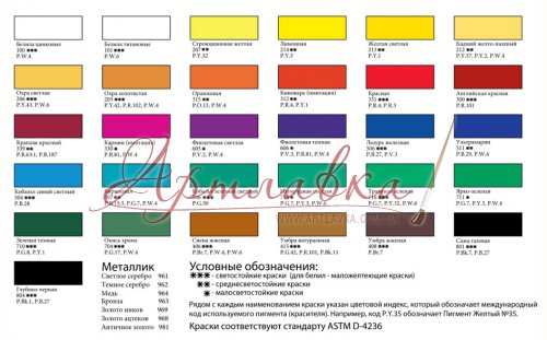 Широкий вибір різних квітів гуаші художньої, зручний обсяг і гарна ціна дозволяє підібрати стартовий комплект художника, а також підібрати відсутні кольору.