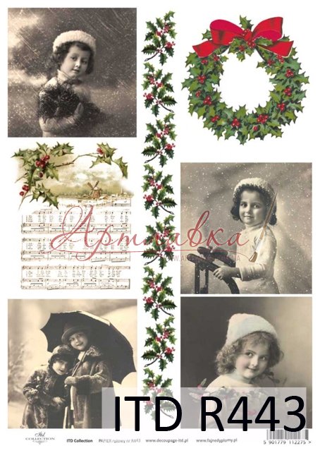 Рисова декупажна карта "Вінтажну Різдво", 20х30см
