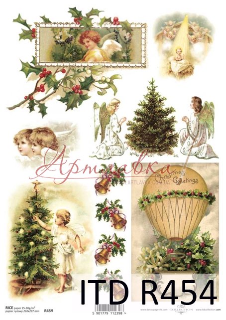 Рисова декупажна карта "Рождественські ангели", 20х30см