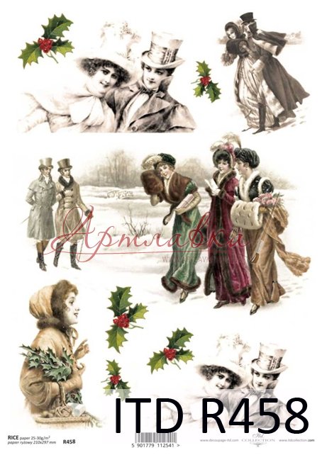 Рисова декупажна карта "Зимова прогулянка", 20х30см