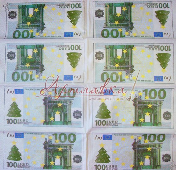 Декупажна серветка "100 євро", 33*33 см