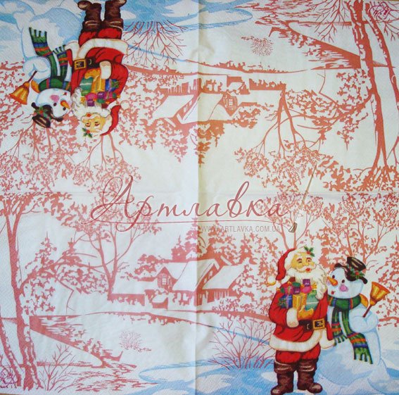 Головна › Декупажна серветка "Санта й засніжене село", 33*33 см