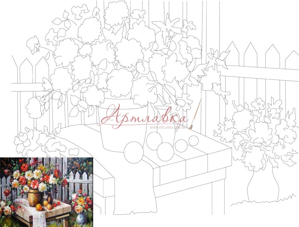 Полотно з контуром, "У літньому саду" 30*40см, бавовна, картон, акрил