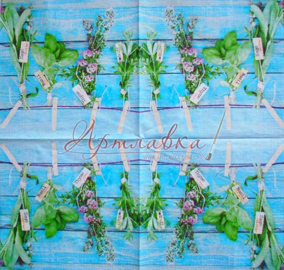 Декупажна серветка "Трави на прищіпках", 33*33см