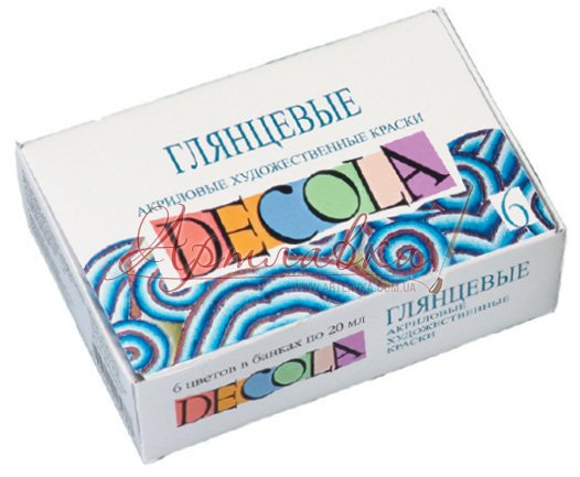 Глянсові художні акрилові фарби серії «DECOLA» легко наносяться на будь-яку поверхню (папір, картон, ґрунтоване полотно, дерево, метал, шкіру й ін.), мають високу покриваністю, добре змішуються, швидко висихають. Після висихання фарби здобувають глянсовий блиск.