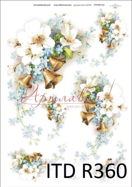 Рисова декупажна карта "Колір яблуні й дзвіночки", 20х30см
