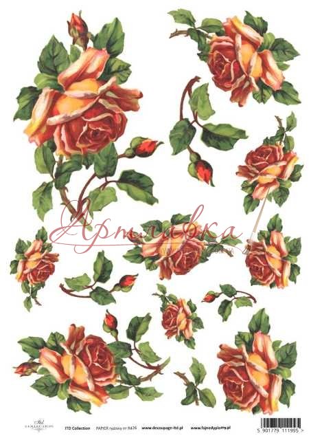 Головна › Рисова декупажна карта "Жовтогарячі троянди", 20х30см