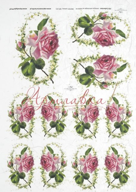 Головна › Рисова декупажна карта "Квіти троянди", 20х30см