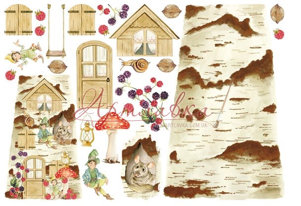 Серветка декупажна з рисового паперу "Будиночок у лісі",35*50см