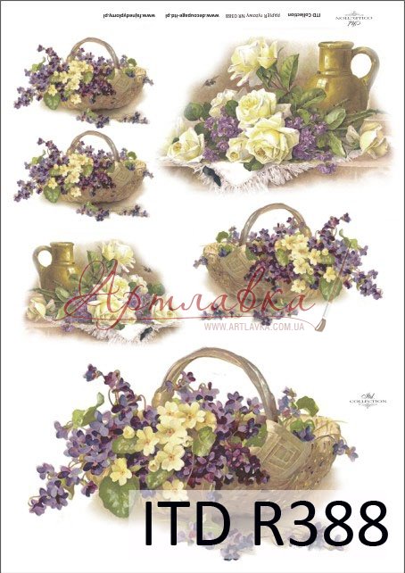 Рисова декупажна карта "Кошика з фіалками", 20х30см